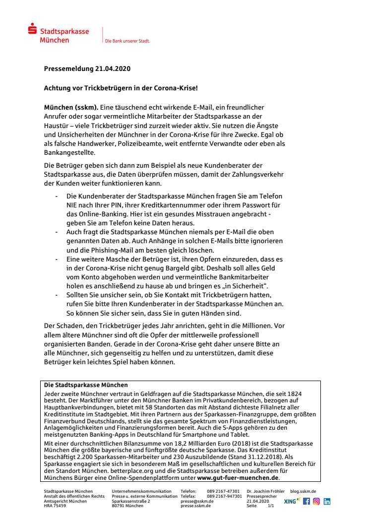Achtung vor Trickbetrügern in der Corona-Krise!