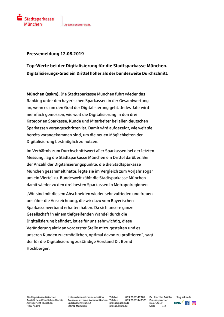 Top-Werte bei der Digitalisierung für die Stadtsparkasse München