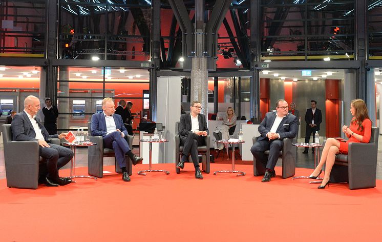 V.l.n.r.: Stefan Hattenkofer, Prof. Clemens Fuest, Dr. Ulrich Kater, Clemens Baumgärtner und Moderatorin Susanne Schöne im Gespräch.