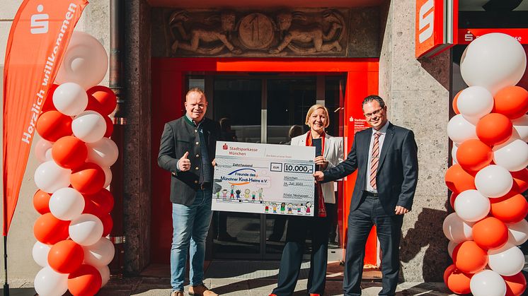 10.000 Euro Spende der Stadtsparkasse München bei Wiedereröffnung der Filiale Neuhausen