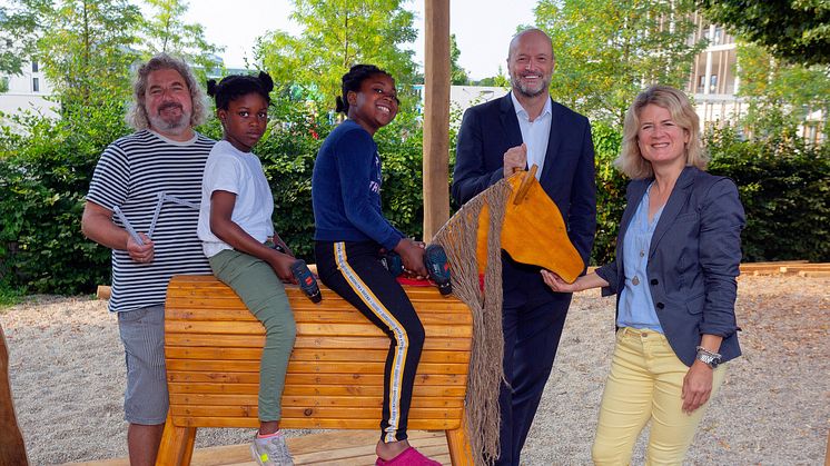 München (sskm). Obdachlosen Kindern und deren Müttern wieder ein Dach über dem Kopf und Lebensfreude geben – das ist unter anderem das Ziel von HORIZONT. Dabei wird der Verein schon seit vielen Jahren von der Stadtsparkasse München unterstützt. Ganz aktuell wieder mit einer Spende für den Erlebnisspielplatz am HORIZONT-Haus am Domagkpark.
