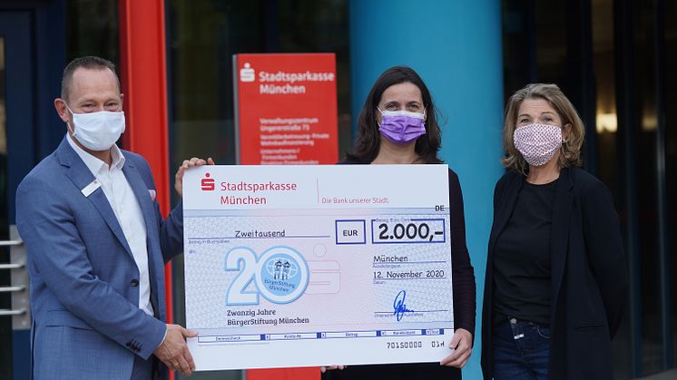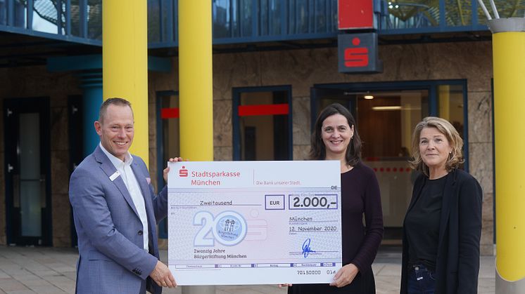 München (sskm). Die Stadtsparkasse München spendet der BürgerStiftung München zu ihrem 20-jährigen Jubiläum 2.000 Euro. Abteilungsleiter Stefan Stamm freut das gleich doppelt: „Ich finde es wunderbar, dass die Stadtsparkasse München als mein Arbeitgeber regelmäßig gemeinnützige Organisationen in unserer Stadt unterstützt. Ich bin bei der BürgerStiftung München seit vielen Jahren selbst aktiv und weiß daher, dass das Geld mit Herz und Verstand für das lokale Gemeinwohl eingesetzt wird. Vielen Dank und auf die nächsten 20 erfolgreichen Jahre!“