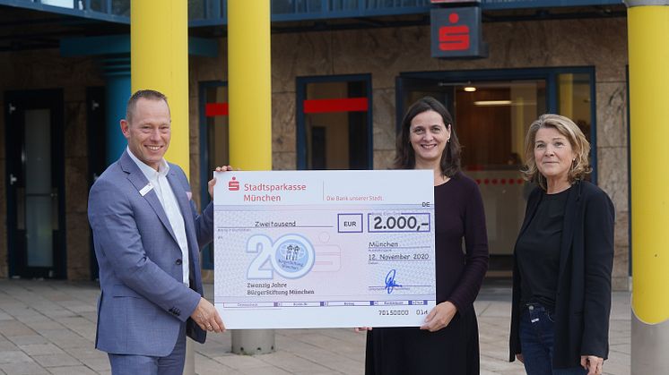 München (sskm). Die Stadtsparkasse München spendet der BürgerStiftung München zu ihrem 20-jährigen Jubiläum 2.000 Euro. Abteilungsleiter Stefan Stamm freut das gleich doppelt: „Ich finde es wunderbar, dass die Stadtsparkasse München als mein Arbeitgeber regelmäßig gemeinnützige Organisationen in unserer Stadt unterstützt. Ich bin bei der BürgerStiftung München seit vielen Jahren selbst aktiv und w