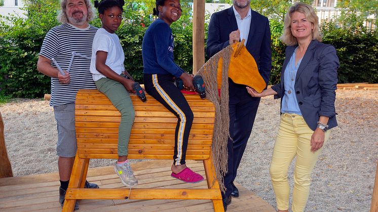 München (sskm). Obdachlosen Kindern und deren Müttern wieder ein Dach über dem Kopf und Lebensfreude geben – das ist unter anderem das Ziel von HORIZONT. Dabei wird der Verein schon seit vielen Jahren von der Stadtsparkasse München unterstützt. Ganz aktuell wieder mit einer Spende für den Erlebnisspielplatz am HORIZONT-Haus am Domagkpark.